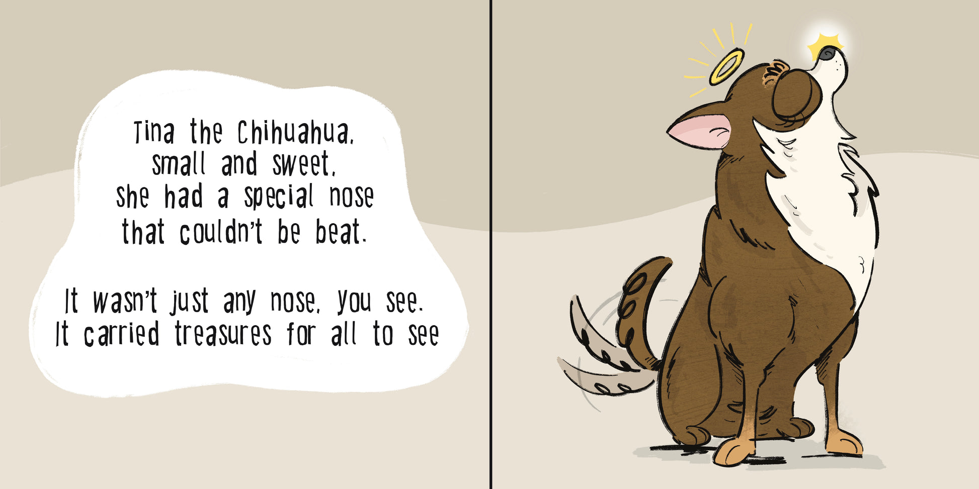 Tina the Chihuahua may be tiny, but her nose leads to big adventures. From buzzing bees and tumbling peas to sticky socks and surprise guests, everything seems to find its way to her snout! As Tina explores her whimsical world, each silly thing she picks up turns into part of a joyful, unexpected journey. Bursting with playful rhymes, quirky moments, and heartwarming friendships, this is a tale of curiosity, chaos, and the magic that sticks when you lead with kindness (and a very curious nose). Perfect for all ages, this hand-illustrated hardback book is a delightful addition to any collection, bringing Tina’s enchanting world to life with vibrant detail and charm.